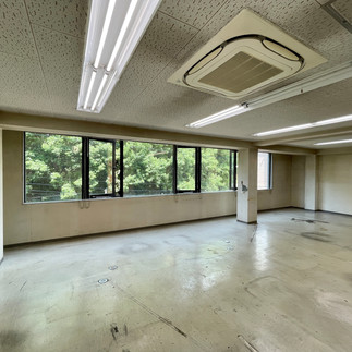 特徴:エレベーターを降りて、右側に入口があります。面積も広く、窓も一面大きくなっていますので、日中は光も入ります。面積も大きいので、事務所兼店舗等にも重宝されそうです。また室内に水道も通っていますので、キッチンなども作ることも可能です。(ガスはありません)